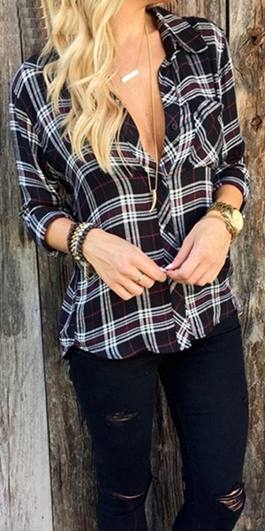 Right, it is a lattice blouse. Classic and stylish style, it boasts single-breasted, lapel and long