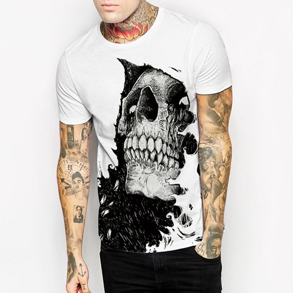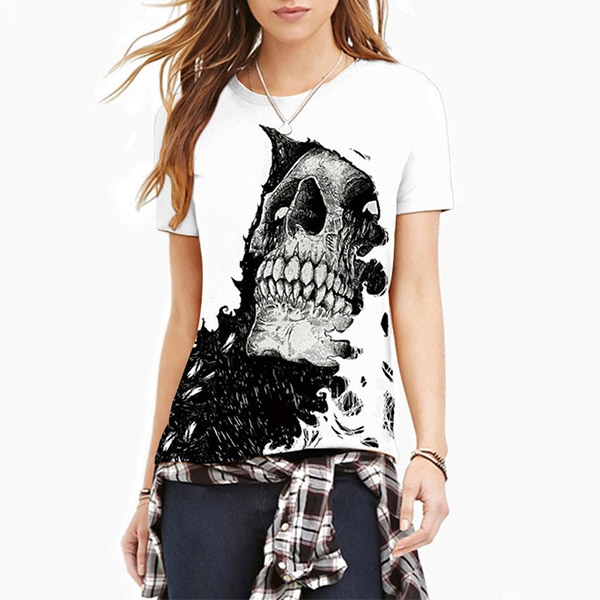 Designed with skull printed pattern,chic and eye-catching. Finished with short sleeve,round neck,