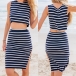 Striped style,including a sleeveless round neck crop tops and a high waist slit hem bust skirt,