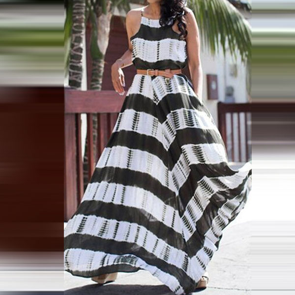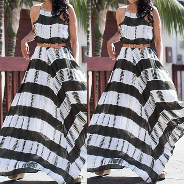 Sling style,its contrast color striped design makes this piece look so eye-catching and stylish,while its maxi length and sleek