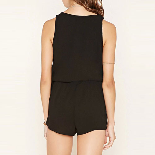 deep v-neckline and an elastic waist,this romper can keep you cozy yet feminine. An ideal companion for your summer days.