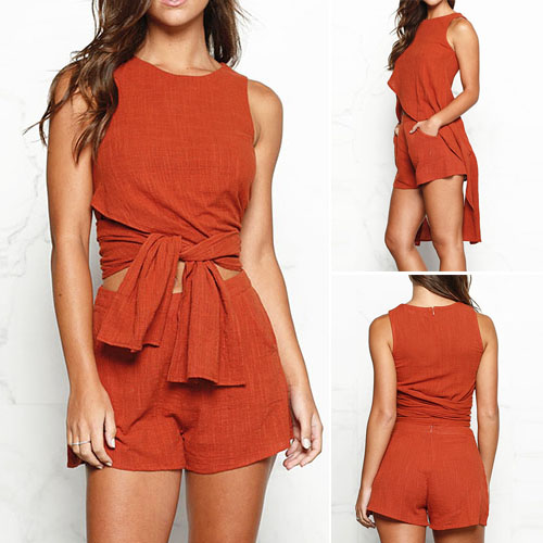 Solid color style,including a sleeveless round neck high-low hem tops and an elastic