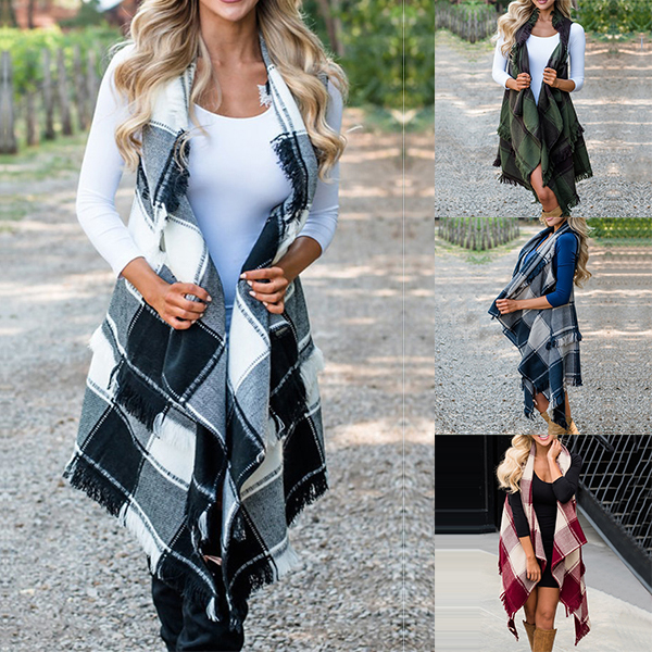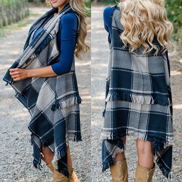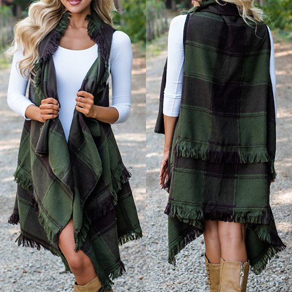 Fashion Sleeveless Irregular Hem Plaid Cardigan