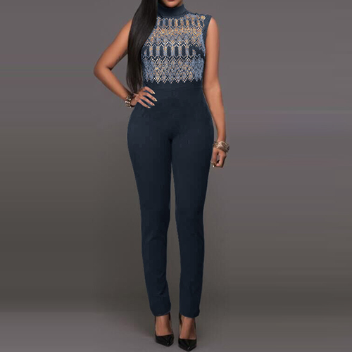 Except for bodycon dresses,this jumpsuit is also a good way to accentuate charming figure. Styled with sleeveless,mock neck