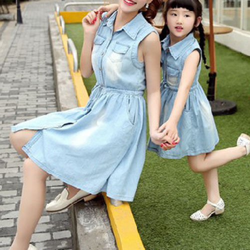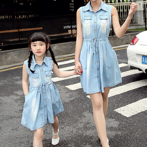 When walking on the street with your daughter with this denim parent-child dress,a beautiful landscape