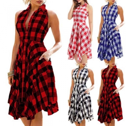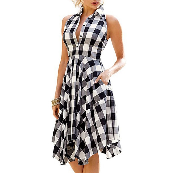stylish and popular. Finished with sleeveless,POLO collar and irregular hem,this dress knows how to