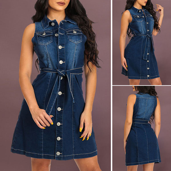 Your style can have an instant boost when you wear this denim dress. It is styled with sleeveless,