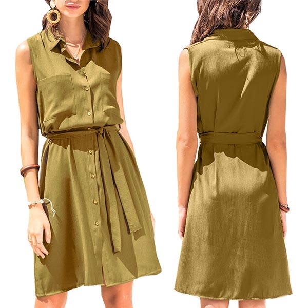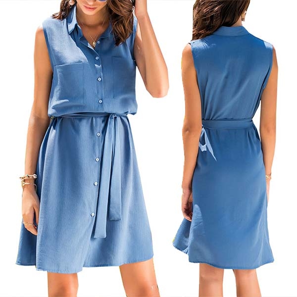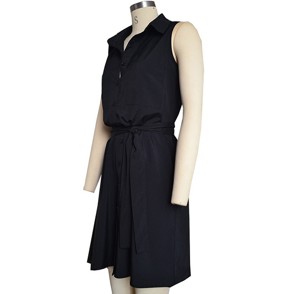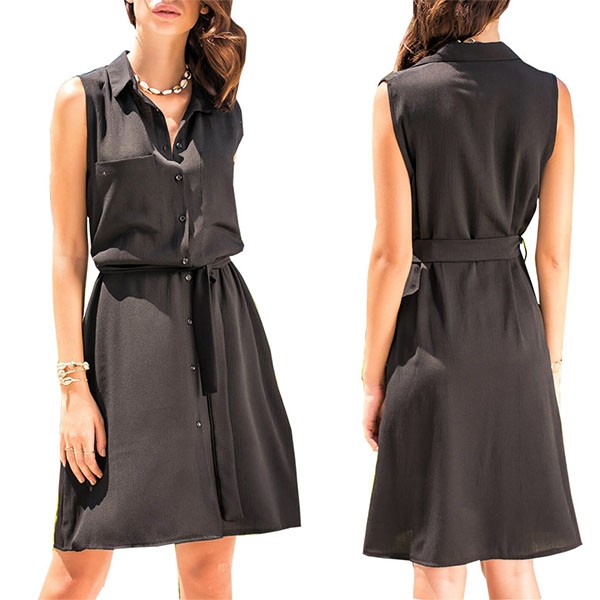 Solid color style,finished with sleeveless,POLO collar and single-breasted design,this shirt dress can fit for