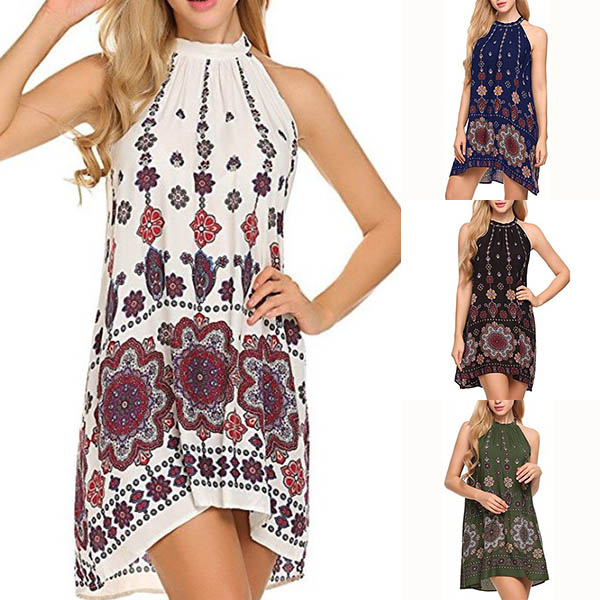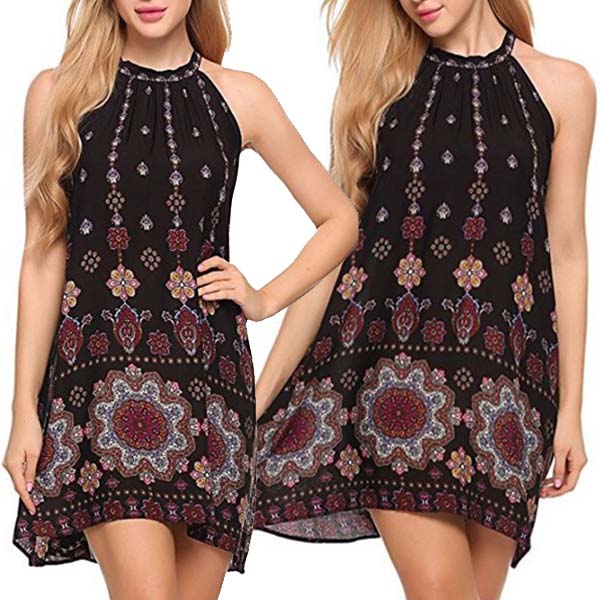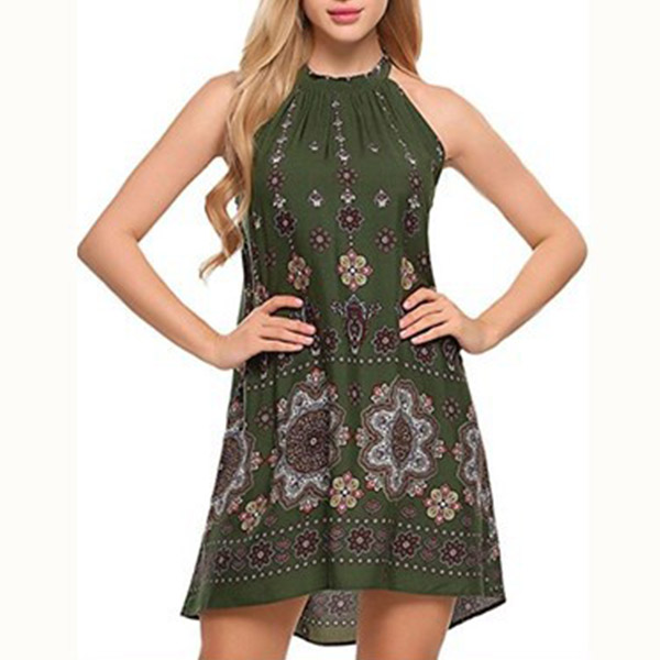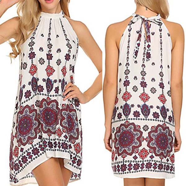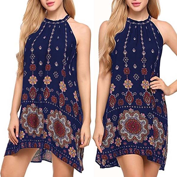 printed pattern,with sleeveless and halter design,this dress makes it easy for any girl to look effortless