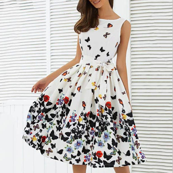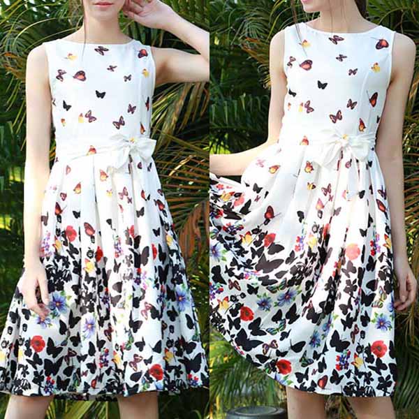 Designed with sleeveless,round neck and a clean silhouette,this dress can offer you a comfortable day