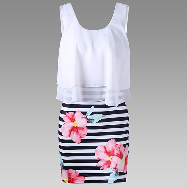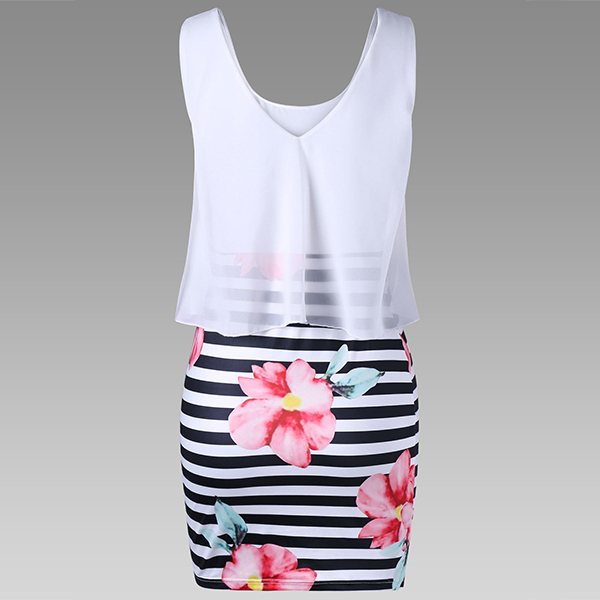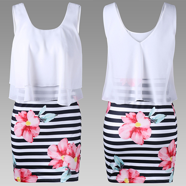 Think it is a two-piece Set? Actually it is one-piece dress. This striped dress with chiffon spliced design makes it look