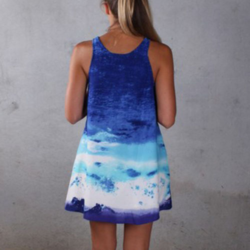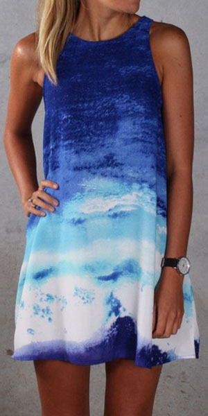 Strolling on your town with this dress,such a casual and relaxed day. Its color gradient and tie-dye printed