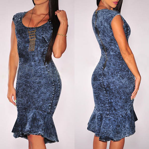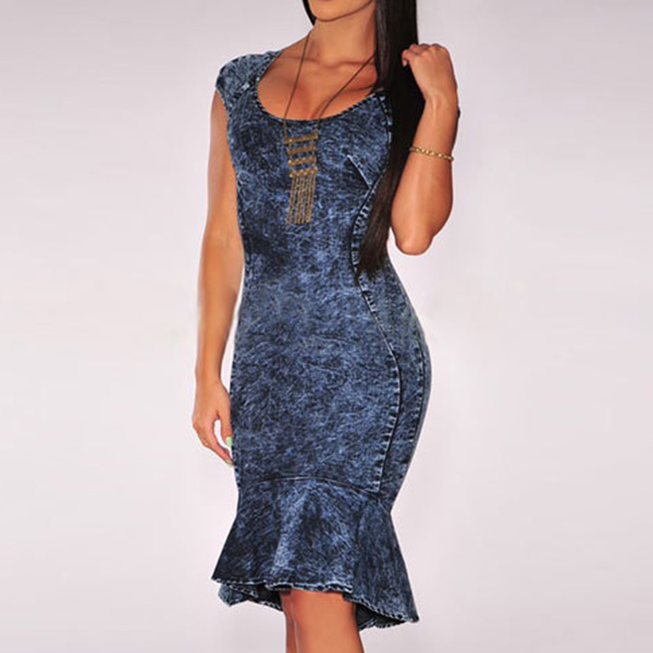 Give your image an instant boost with the help of this denim dress. Finished with sleeveless,round neck,