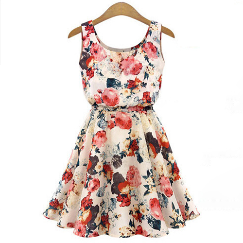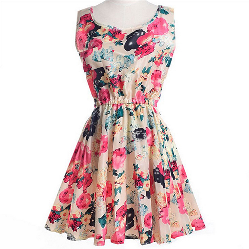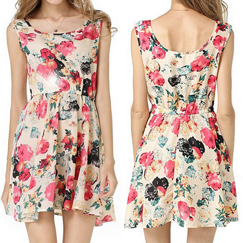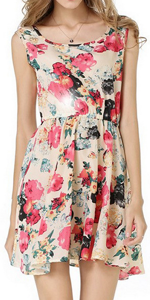 companion. Boasting a sweet and romantic floral print,with sleeveless and round neck design,