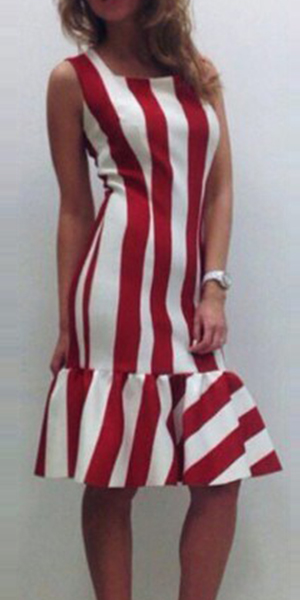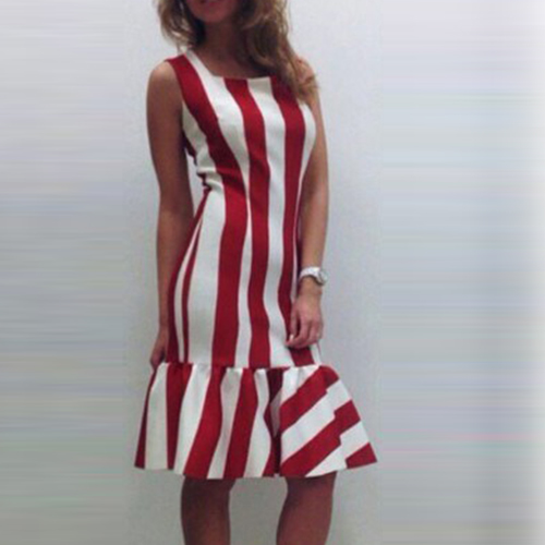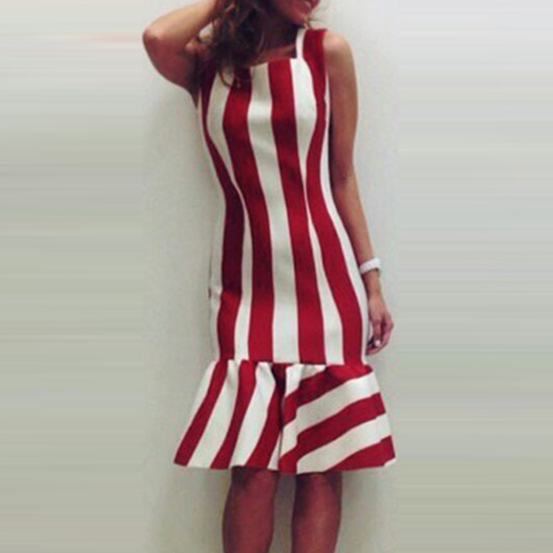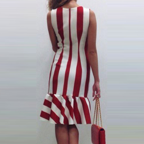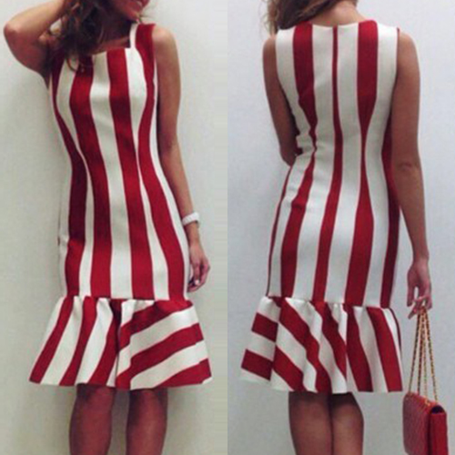 Striped style,with sleeveless,round neckline,flouncing hem and slim fit design,this dress can
