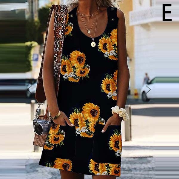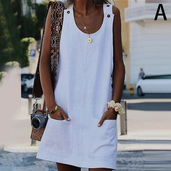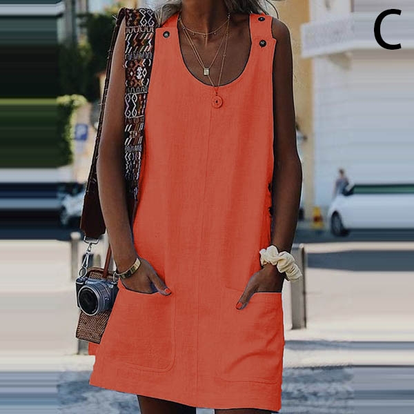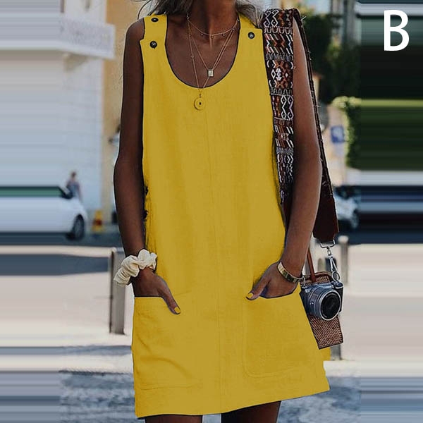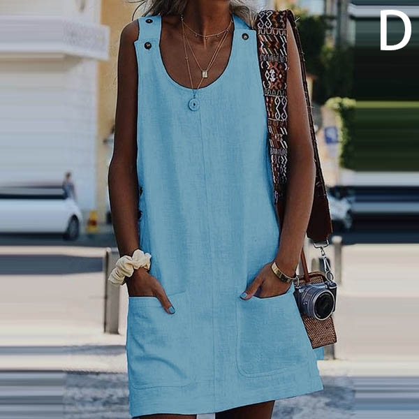 with sleeveless,round neck and a loose silhouette,this dress is sure to offer you a comfortable day.