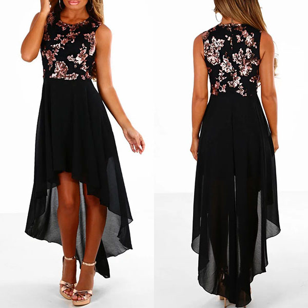 This chiffon dress is outfitted with sleeveless,round neck and a high-low hem,cozy,charming and