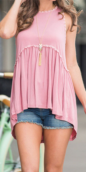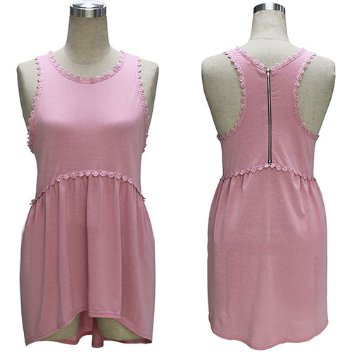 Boasting a sweet pink color,with sleeveless,round neck and high-low hem design,chic and