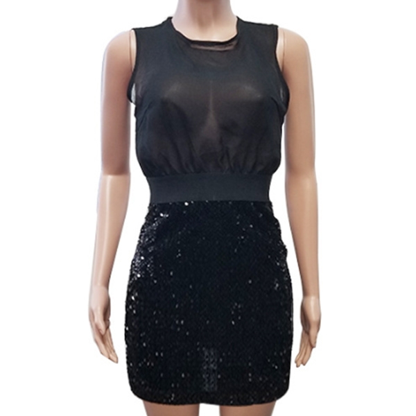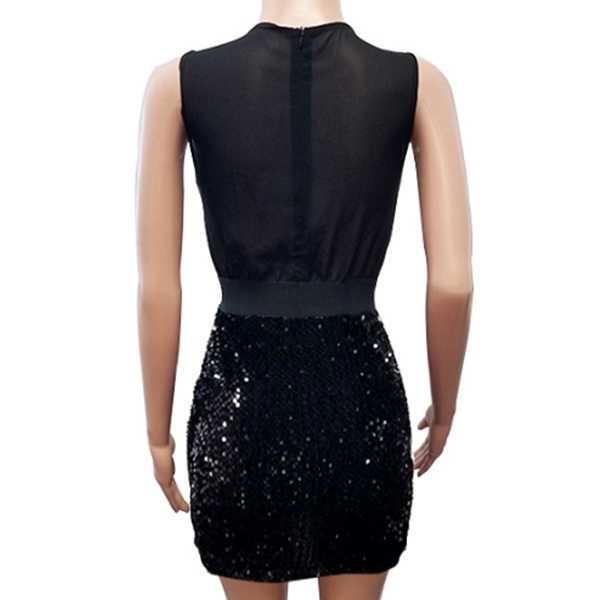 round neck and high waist design,this dress can display your slender figure. And the sequin spliced design will
