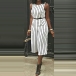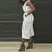 Striped style,with sleeveless,round neck and high waist design,this jumpsuit is sure to give you a