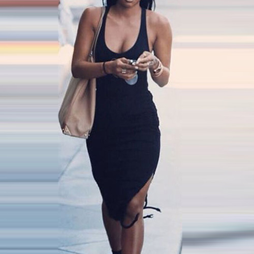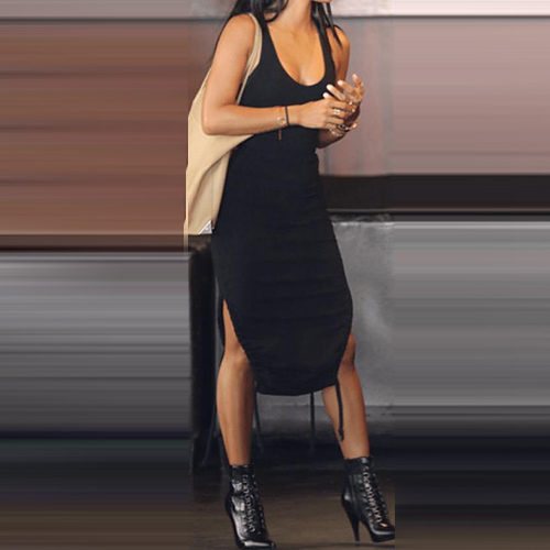 Easy to gain a chic and stylish style once you slip into this dress! Solid color style,with sleeveless,