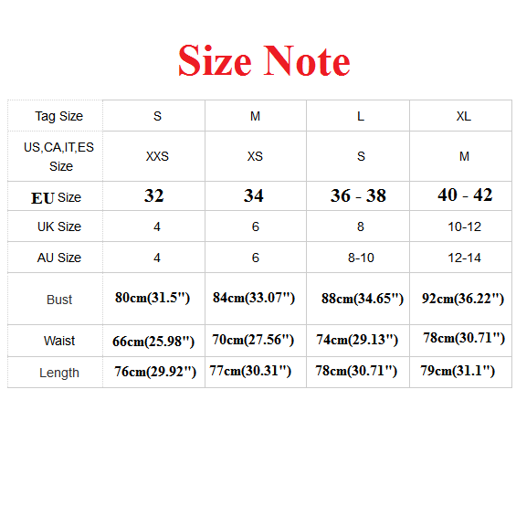 XL : Bust : 92cm(36.22"); Waist : 78cm(30.71"); Length : 79cm(31.1");