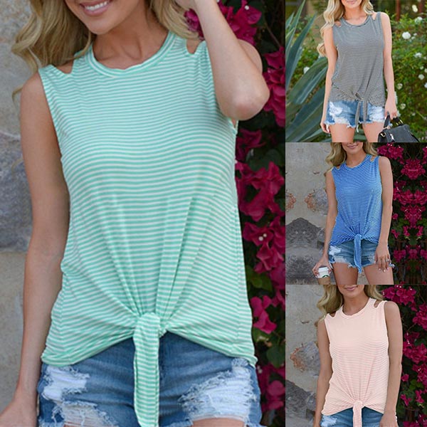 Hey,girls,you can count on this t-shirt to achieve for a cozy yet stylish style. Striped style,with sleeveless,