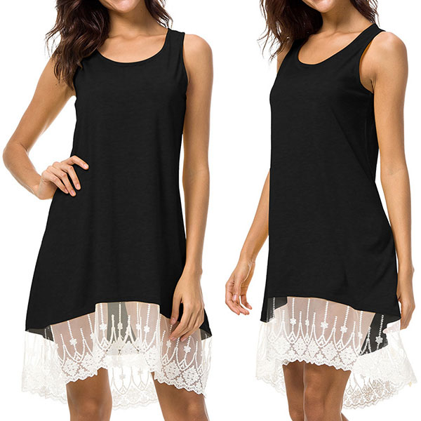 you a comfortable day. Moreover,the lace spliced high-low hem design makes this piece look more attractive.