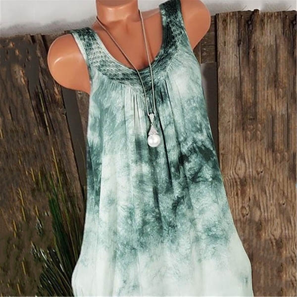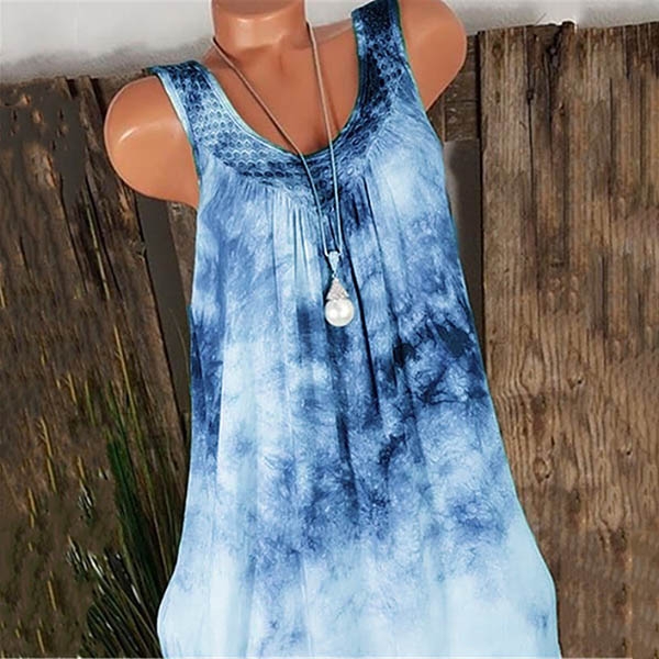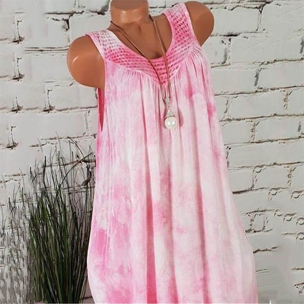 What makes this dress look so chic and attractive? It owes to the tie-dye printed details.