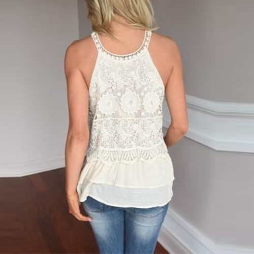 Embrace the warmth of a sunny weekend with this cozy yet stylish top. Lace spliced style,with sleeveless,round