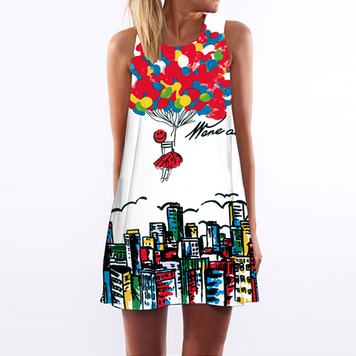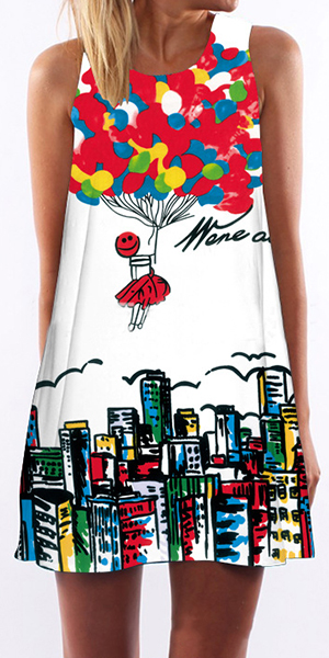 printed pattern,with sleeveless,round neck and a loose silhouette,this dress can give you a stylish look as well