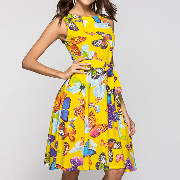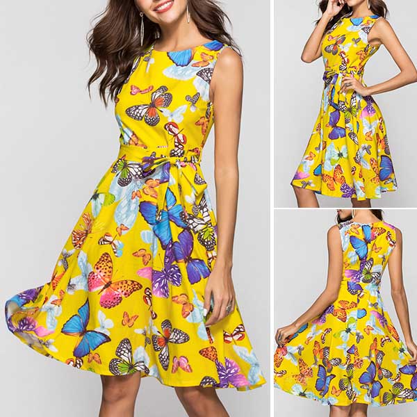This dress is designed with bright and eye-catching printed pattern,which can easily arouse more attention.
