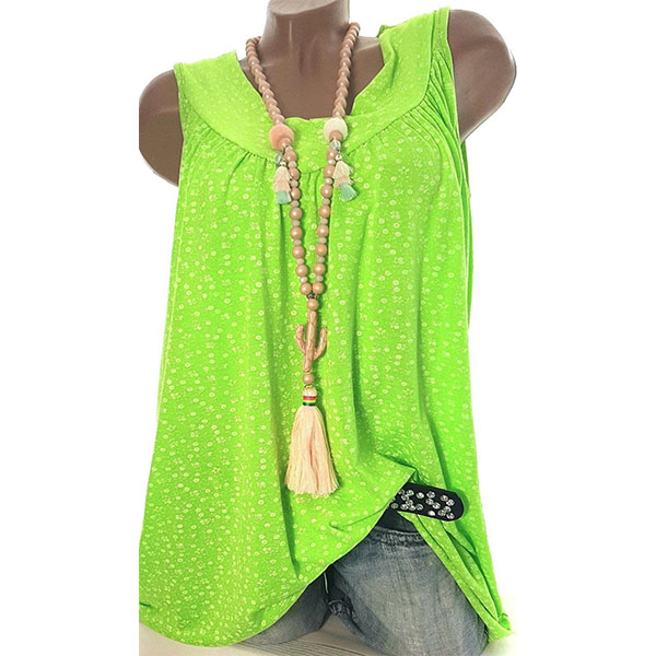 For these hot summer days,this sleeveless chiffon top can be a good choice. Features chic printed pattern,