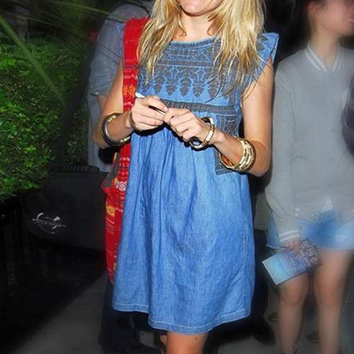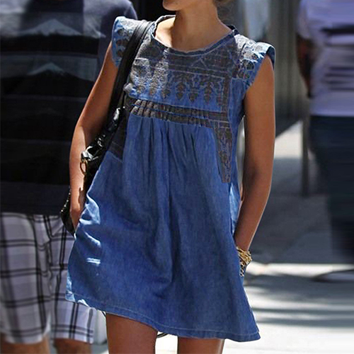 this denim dress look not so monotonous. Designed with sleeveless,round neck and a relaxed