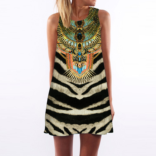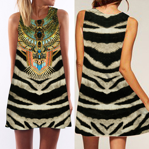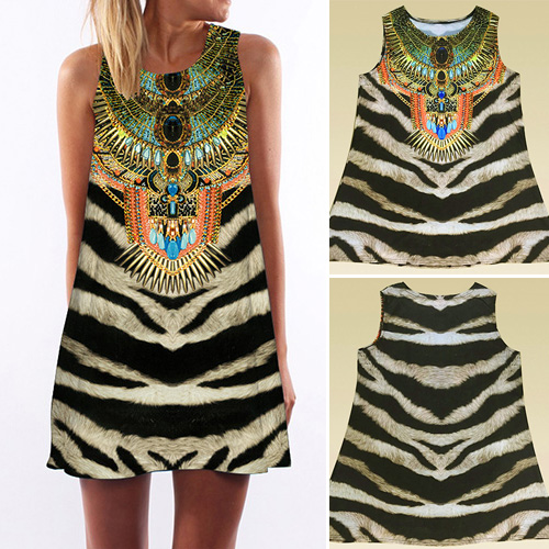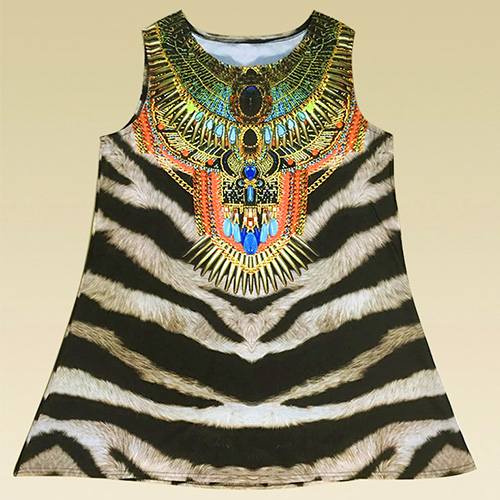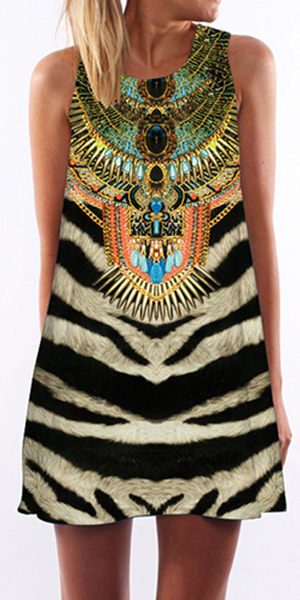 and abstract printed pattern,with sleeveless and round neck design,simple and delicate. Dress it up with