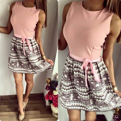 Embrace your summer with this delicate dress! Designed with sleeveless,round neck and a printed