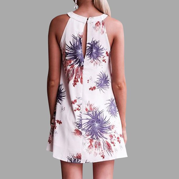 eye-catching printed pattern,with sleeveless,round neck and soft fabric,this dress that combines of