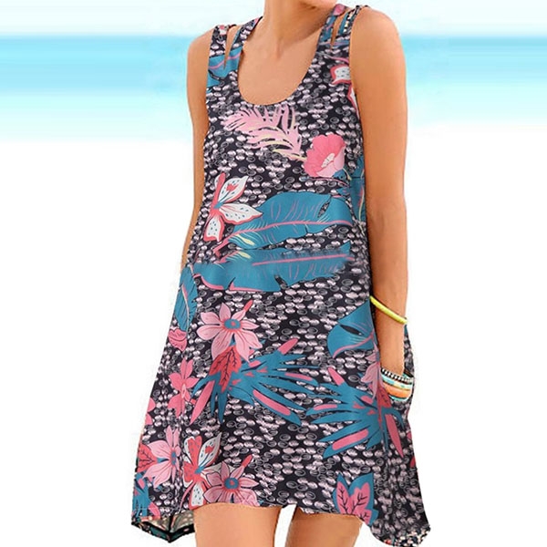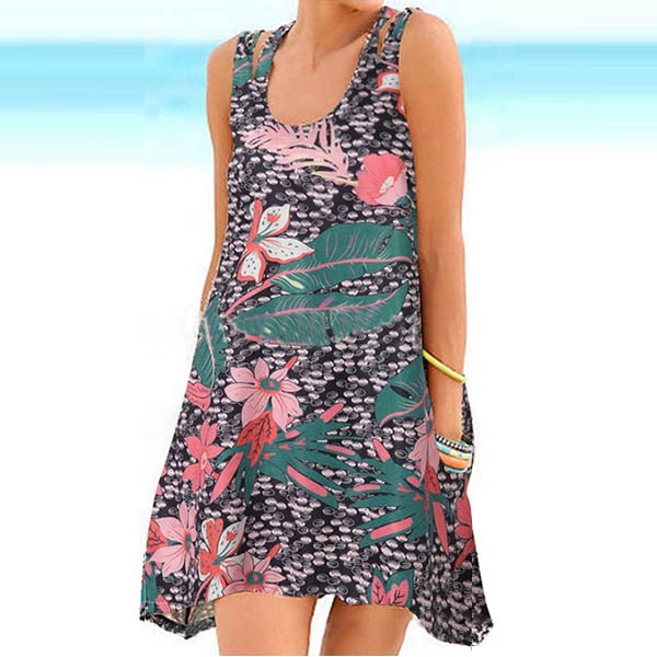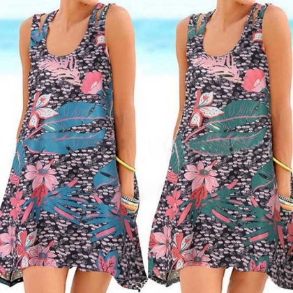 eye-catching printed details,with sleeveless and round neck design,this dress can ensure you a