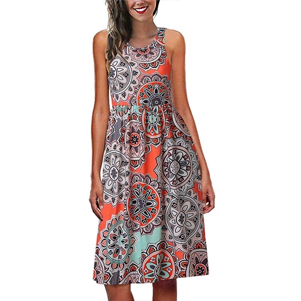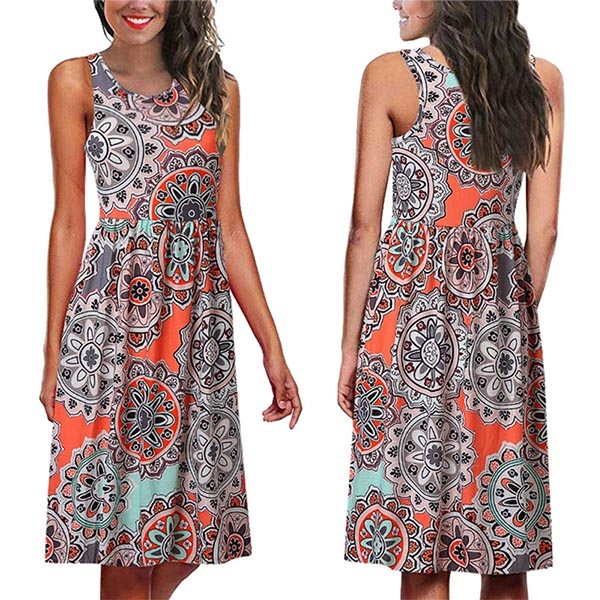 Its chic and eye-catching printed details can help you catch more eyes. Finished with sleeveless,