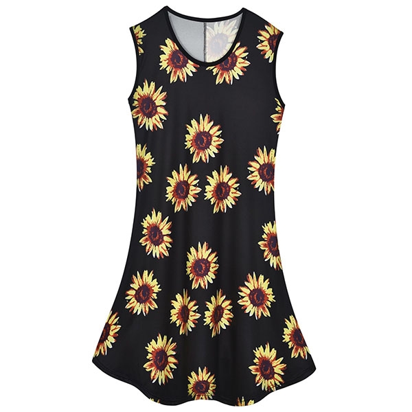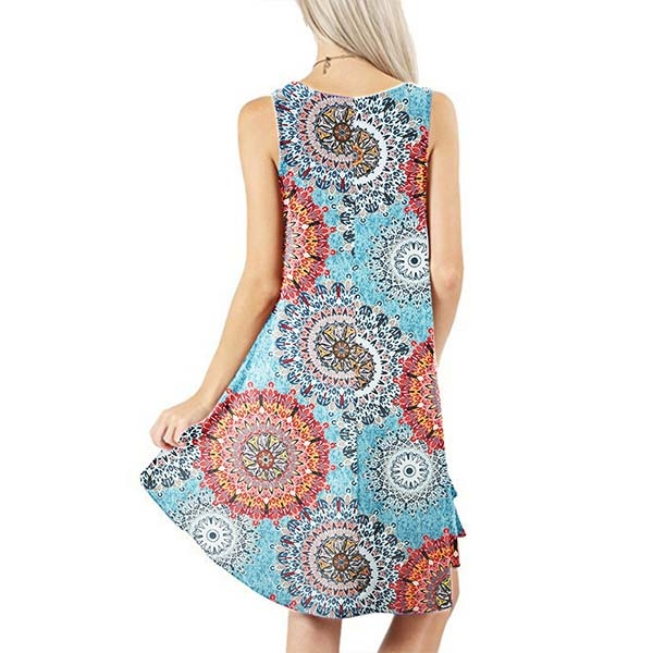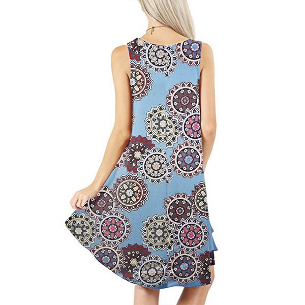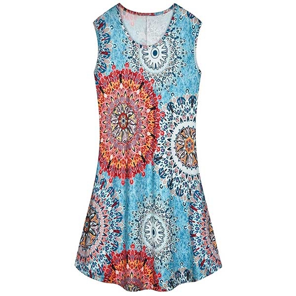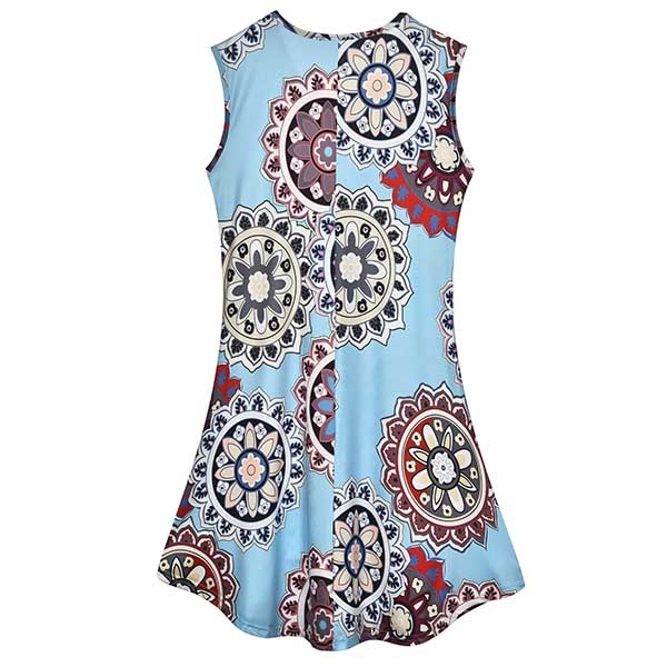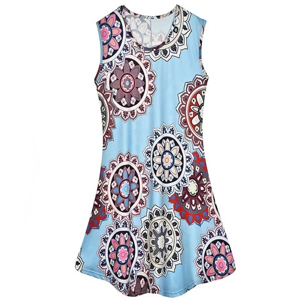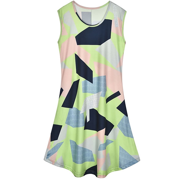 with chic and colorful printed details,with sleeveless,round neck and a loose silhouette,which is sure