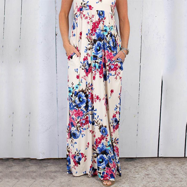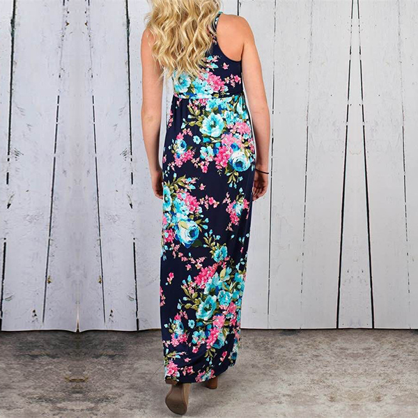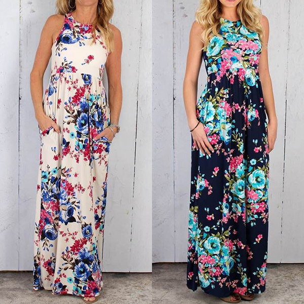 Its vibrant floral print design lends you a romantic and playful vibe. Designed with sleeveless,round neck and a maxi length,