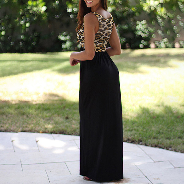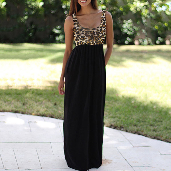 Fashion Sleeveless Round Neck Printed Spliced High Waist Maxi Dress