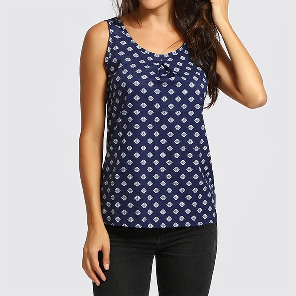 with sleeveless,round neck and chic printed details,this wonderful piece can offer you different fashion