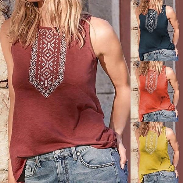 It is finished with sleeveless,round neck and chic printed details,simple in design,but filled with