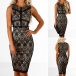wear this lace dress. Outfitted with sleeveless,round neck,high waist and a fit silhouette,this refined lace dress