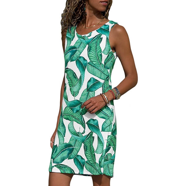 The leaf printed details make this piece look so eye-catching. Finished with sleeveless,round neck and