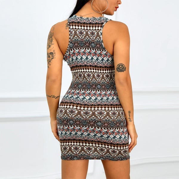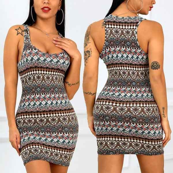 Thanks to the chic printed details,you can arouse more eyes. It is finished with sleeveless,round neck