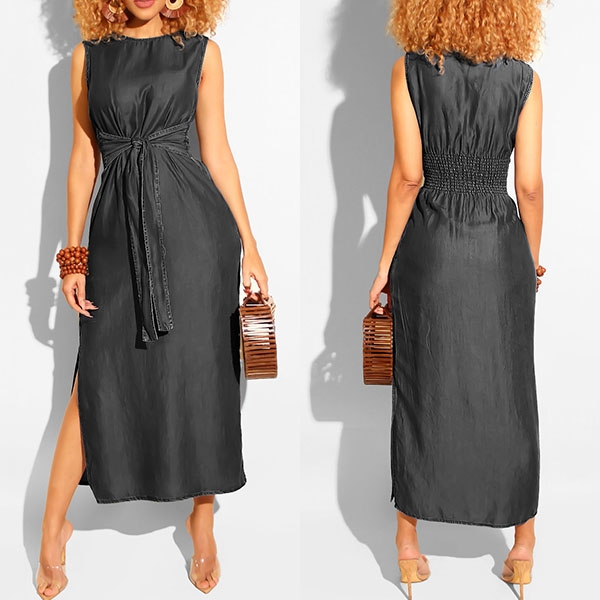 round neck and slit hem design,the unique waist and lace-up design will better highlight your figure.