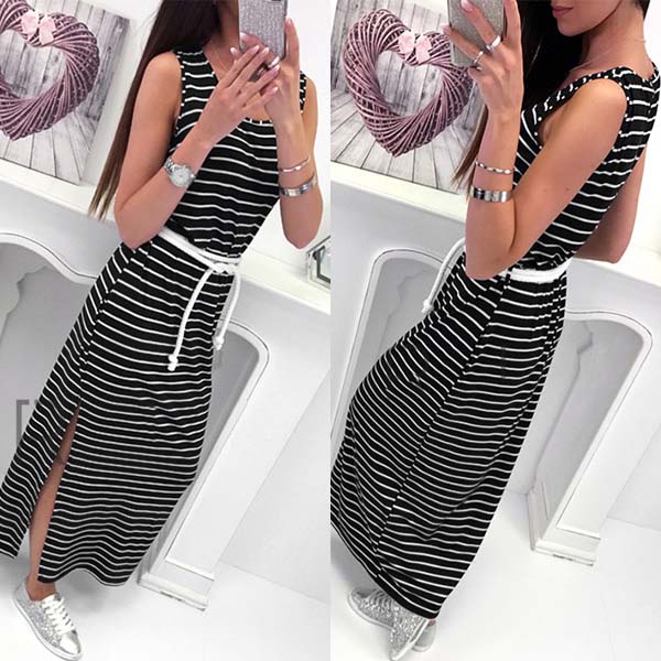 Style and cozy come together so perfectly in this maxi dress! Designed with striped element,stylish
