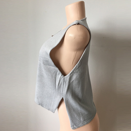 Fashion Sleeveless Round Neck Solid Color High-low Hem Knit Tank Top